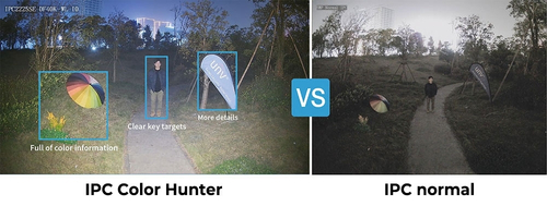 Gracias al sensor de gran tamaño y las luces blancas de apoyo que alcanzan los 40 metros, podrá identificar con precisión el color de un vehículo o la vestimenta de una persona sospechosa.