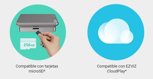 Funciona con una batería recargable de larga duración y ofrece almacenamiento tanto en tarjeta microSD como en la nube.