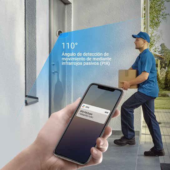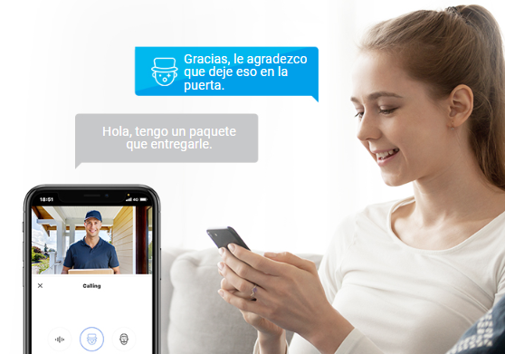 Gracias a la aplicación EZVIZ, puedes ver en directo lo que ocurre y hablar con los visitantes aunque no estés en casa.