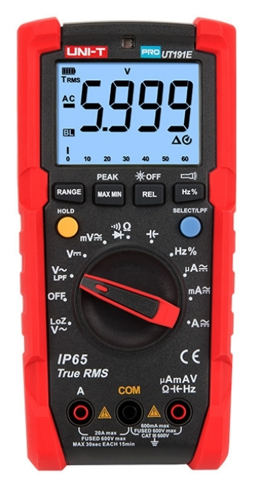 multímetro industrial UT191E Con True RMS IP65 hasta 600V/20A