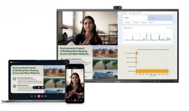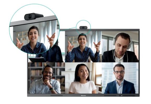 La pantalla interactiva HISENSE incorpora una cámara 4K integrada que mejora la calidad de las videollamadas y transmisiones en vivo, ofreciendo imágenes nítidas y detalladas sin necesidad de accesorios adicionales.