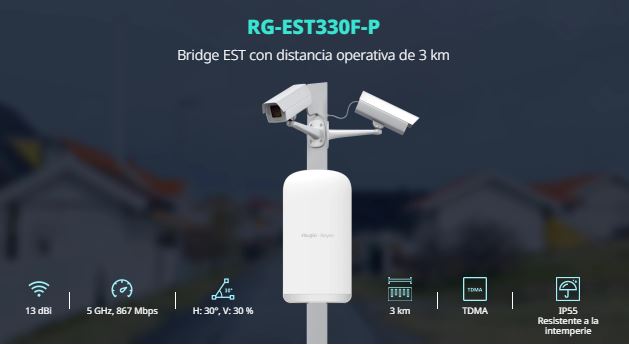 Una de las grandes ventajas del puente WiFi Reyee RG-EST330F-P es su capacidad para establecer enlaces estables a distancias de hasta 3 kilómetros.