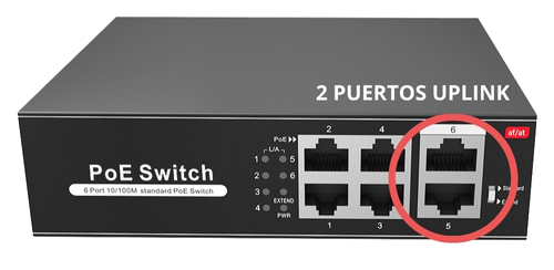 Además, incluye 2 puertos uplink para ampliar la red o conectarlo a un grabador o router.